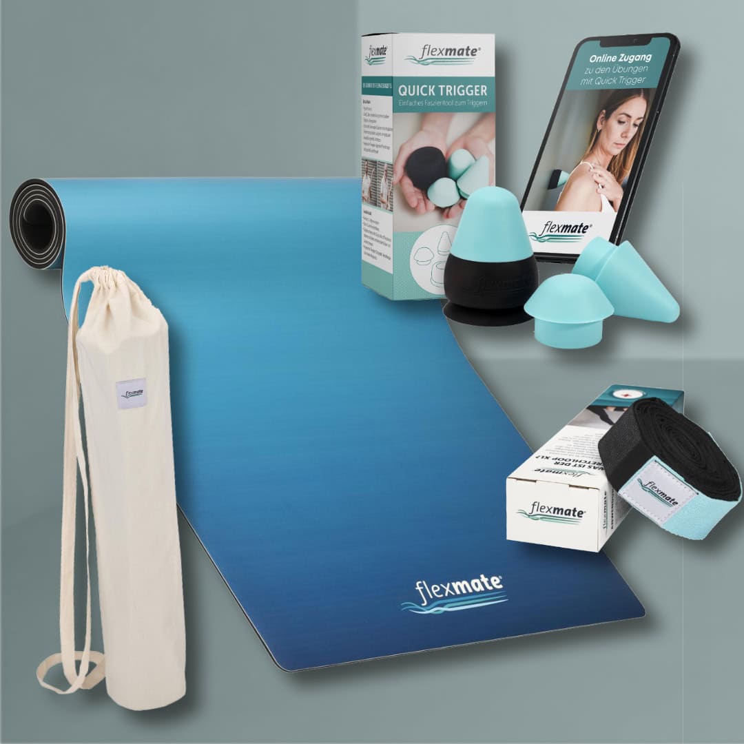 Unser Flexmate Ganzkörper-Mobility-Paket kombiniert die Stretchloop XL, den Quick Trigger und die Basemat Pro – für ein umfassendes Übungspaket von Kopf bis Fuß. Es ermöglicht gezieltes Dehnen, Mobilisation und Triggerpunktmassage für jedes Trainingslevel und fast alle Körperregionen – egal ob zuhause, im Studio oder unterwegs. Wenn du unser Ganzkörper-Übungs-Paket regelmäßig nutzt, erhältst du eine ganzheitliche Lösung für mehr Beweglichkeit, Stabilität und weniger Schmerzen – in nur einem Spar-Set.